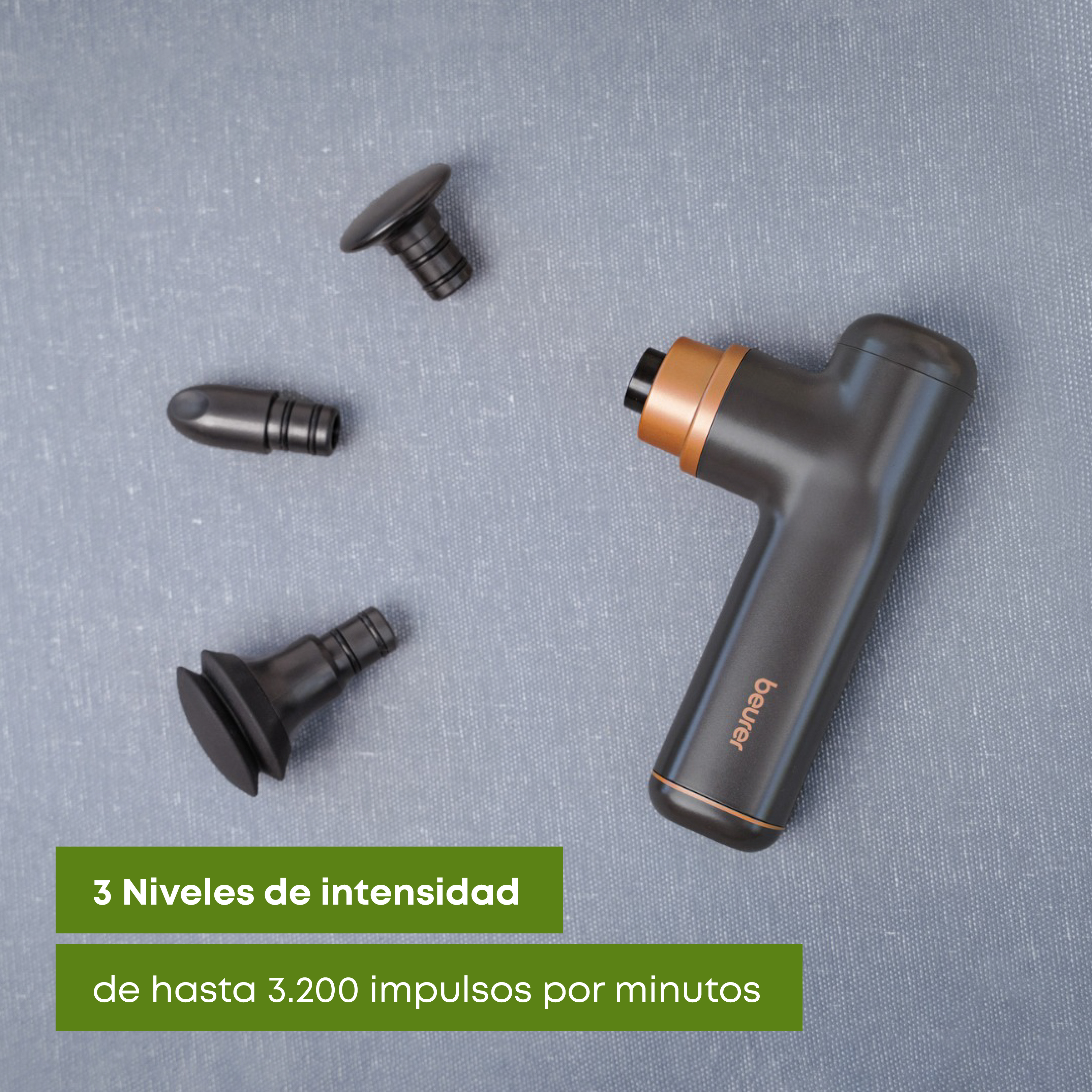 Nuestra pistola de masaje MG 79 de Beurer está pensada para activar y recuperar los músculos de forma práctica y rápida. Es ideal para zonas sensibles como el cuello, los pies o cualquier zona del cuerpo, ayudando a liberar la tensión acumulada.