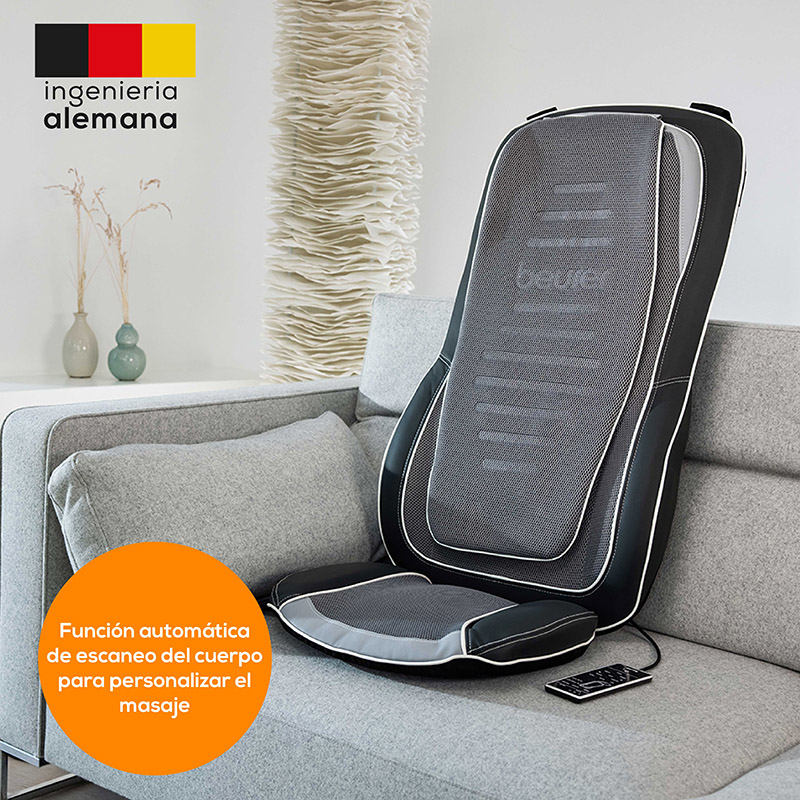 .Funda extraíble y lavable a 40º en la lavadora Superficie de masaje extra grande: respaldo: 89 x 48 cm, asiento: 40 x 47,5 cm Moviendo los 4 cabezales de masaje a lo largo de la columna vertebral, podrá regalarse un potente masaje eléctrico de espalda siempre que lo desee.
