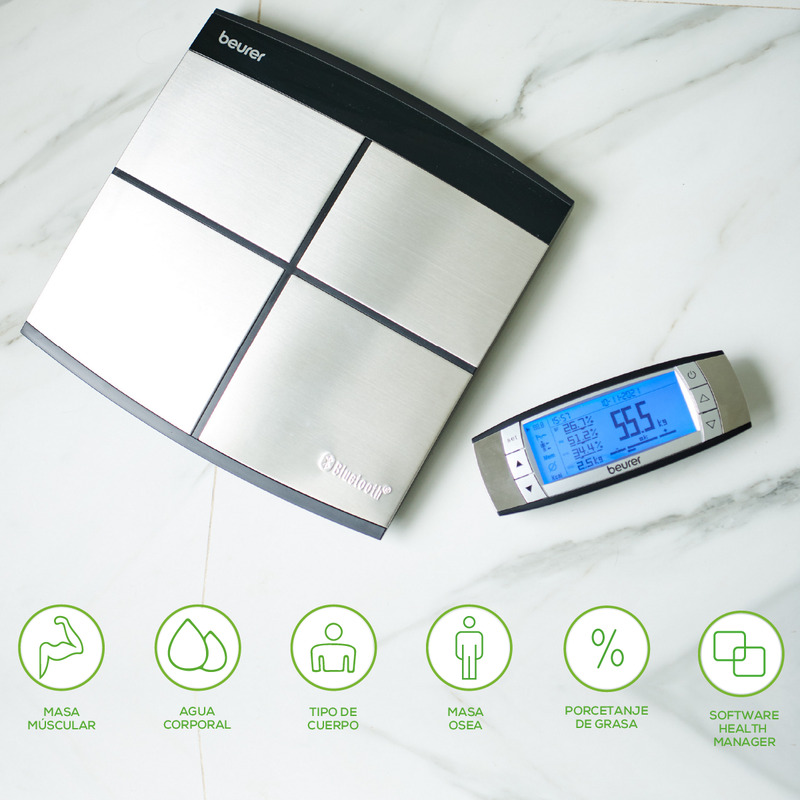 .CON LA APLICACIÓN: Los valores medidos se pueden enviar por Bluetooth al» beurer HealthManager Pro» o» beurer Aplicación HealthManager»: para un análisis corporal detallado con evaluación gráfica