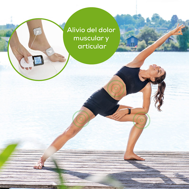 .Estimulación nerviosa eléctrica transcutánea (TENS): Los impulsos eléctricos suprimen la transmisión de señales de dolor al cerebro por lo cual, es ideal en caso de calambres, lesiones o dolores crónicos